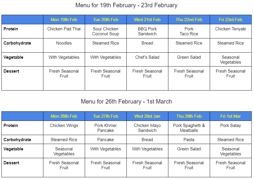 MENU FOR FEBRUARY
