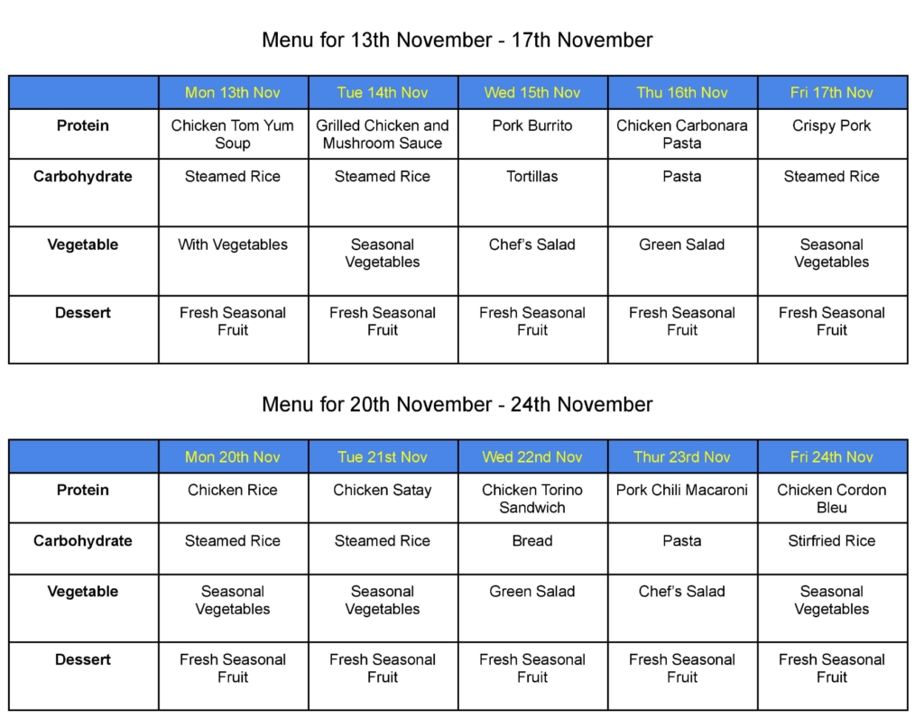 MENU FOR NOVEMBER