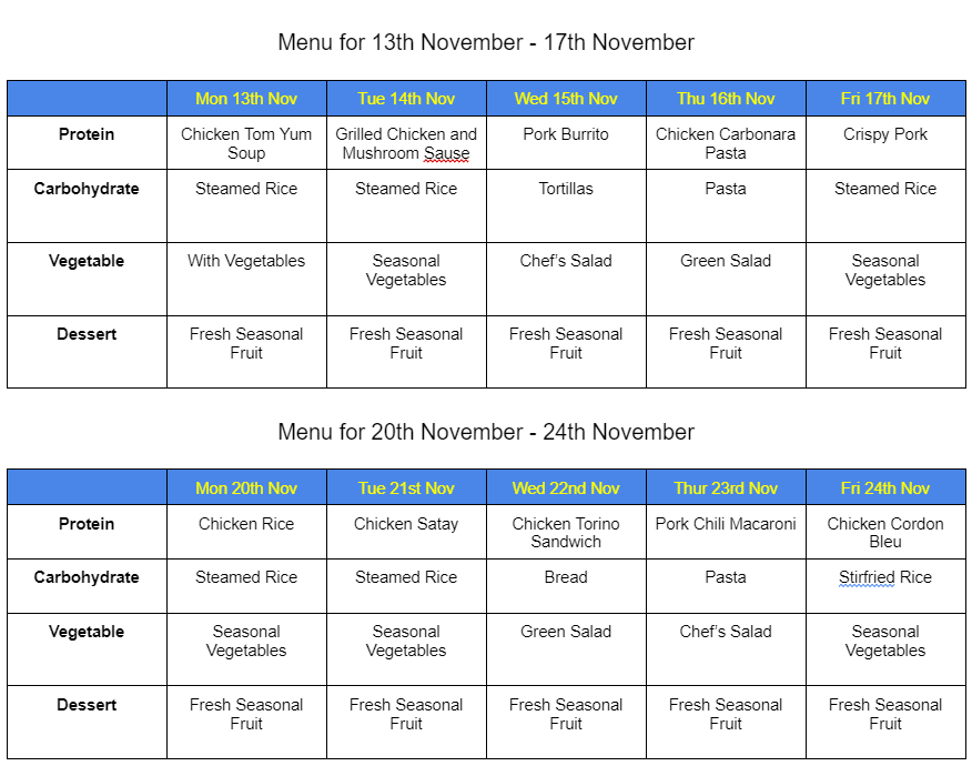 MENU FOR NOVEMBER