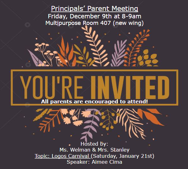 - December 21- Jan 9th – NO SCHOOL: Christmas Break