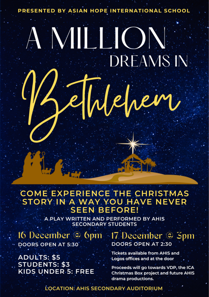 - December 12th – Grade 6 & HS Christmas Choir Concert Performance @6pm