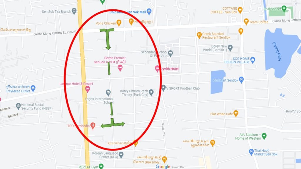 We find that it eases the situation if everyone can approach from the NORTH with the school on their right-hand side (ie. come in from Mong Reththy – Street 1928) and then depart from the school to the SOUTH (out past TPO or towards Street 1986)