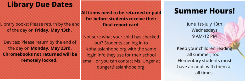 - May 27 – Last Day of School @11am