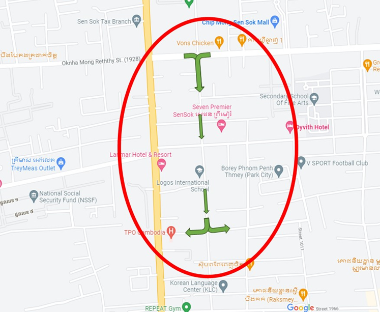 We find that it eases the situation if everyone can approach from the NORTH with the school on their right-hand side (ie. come in from Mong Reththy – Street 1928) and then depart from the school to the SOUTH (out past TPO or towards Street 1986)