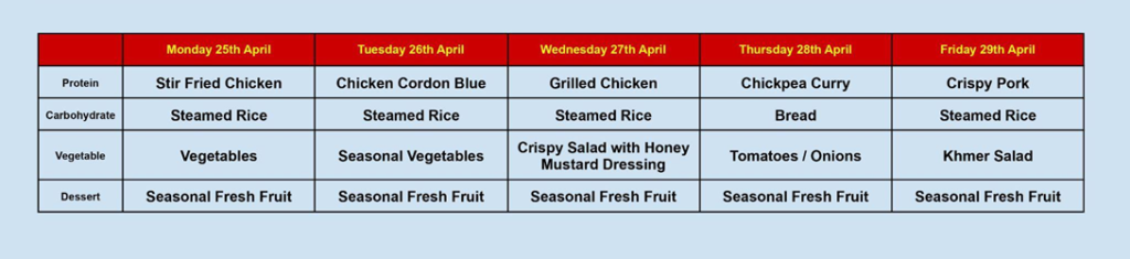 MENU FOR THE REST OF APRIL