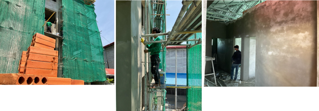 Final skim of cement going on the walls before painting …. Floor tiles, electrics and plumbing all getting lined up ready!