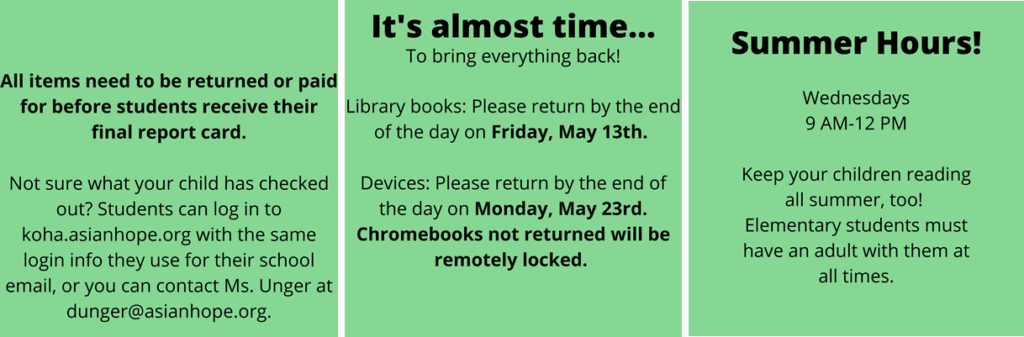 I am monitoring illness-related absences on a daily basis. If your child is unwell, please make sure to inform our office. If you choose to send an email, please CC me the email (ssor@asianhope.org).