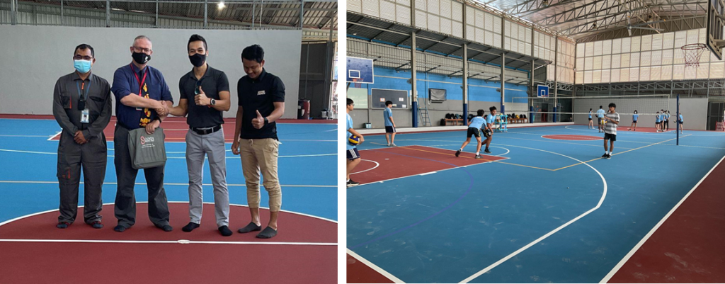 Last Thursday we “officially” took receipt of our gym floor – looking very smart and clean។