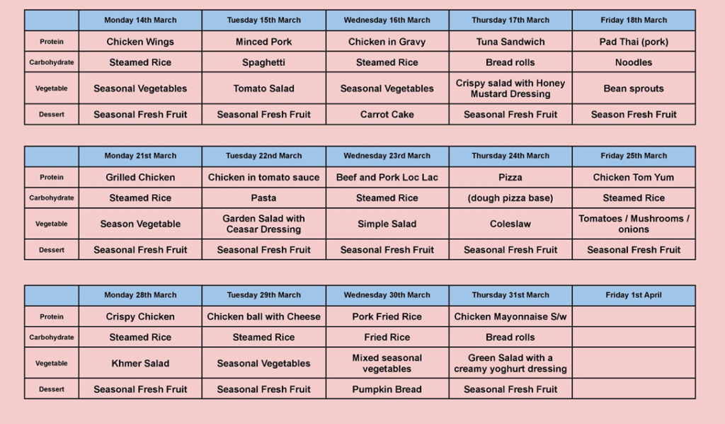 MENU FOR THE COMING DAYS