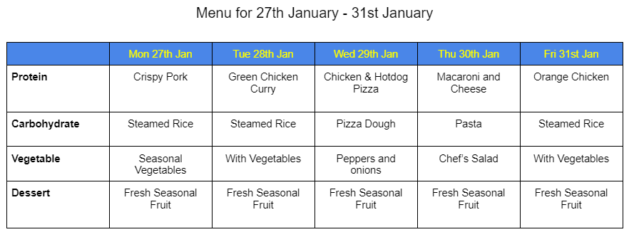 MENU FOR JANUARY
