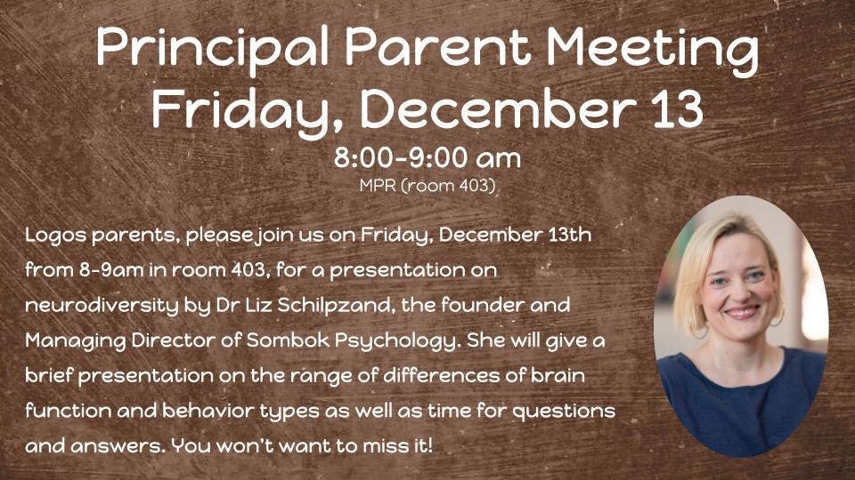 - December 13 – Principal & Parent Meeting at 8:00am