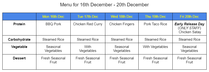 MENU FOR DECEMBER
