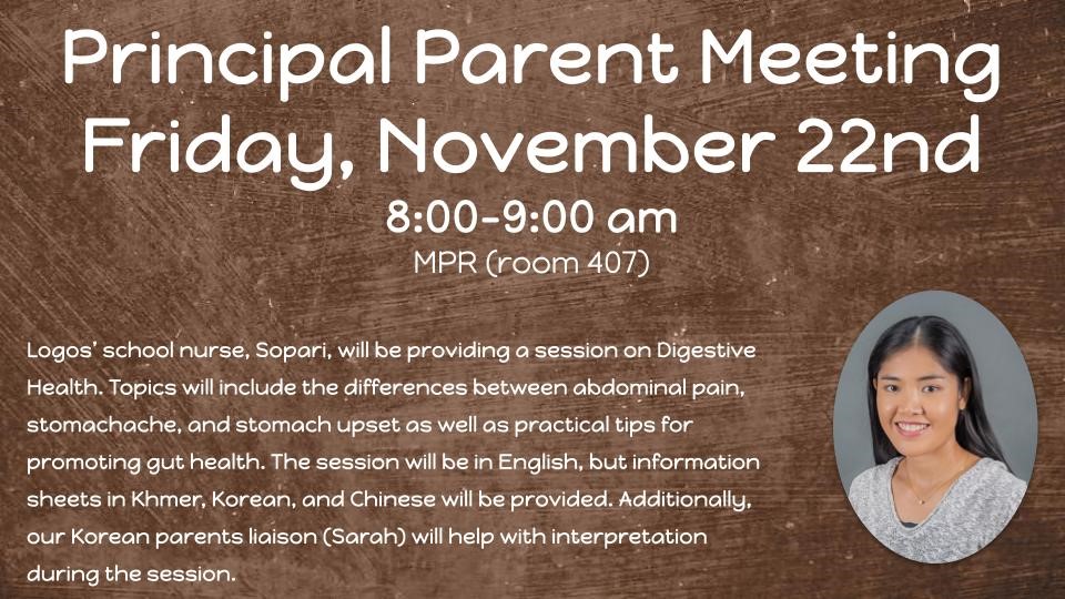 Have you ever wondered about the differences between abdominal pain, a stomachache, and an upset stomach? I am (Sopari) looking forward to sharing this important health information at the Parent-Principal Meeting on November 22nd. To ensure all parents feel included, the session will be in English, but information sheets in Khmer, Korean, and Chinese will be provided. Additionally, our Korean parents liaison (Sarah) will help with interpretation during the session.