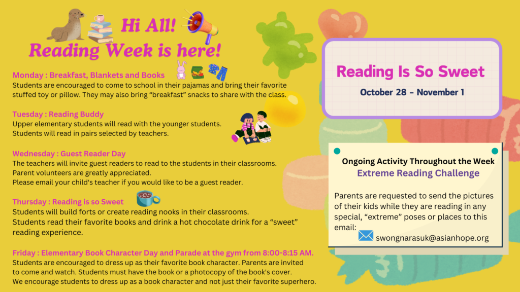 - October 29-November 1 – Reading Week