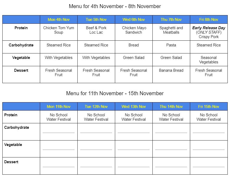 MENU FOR NOVEMBER