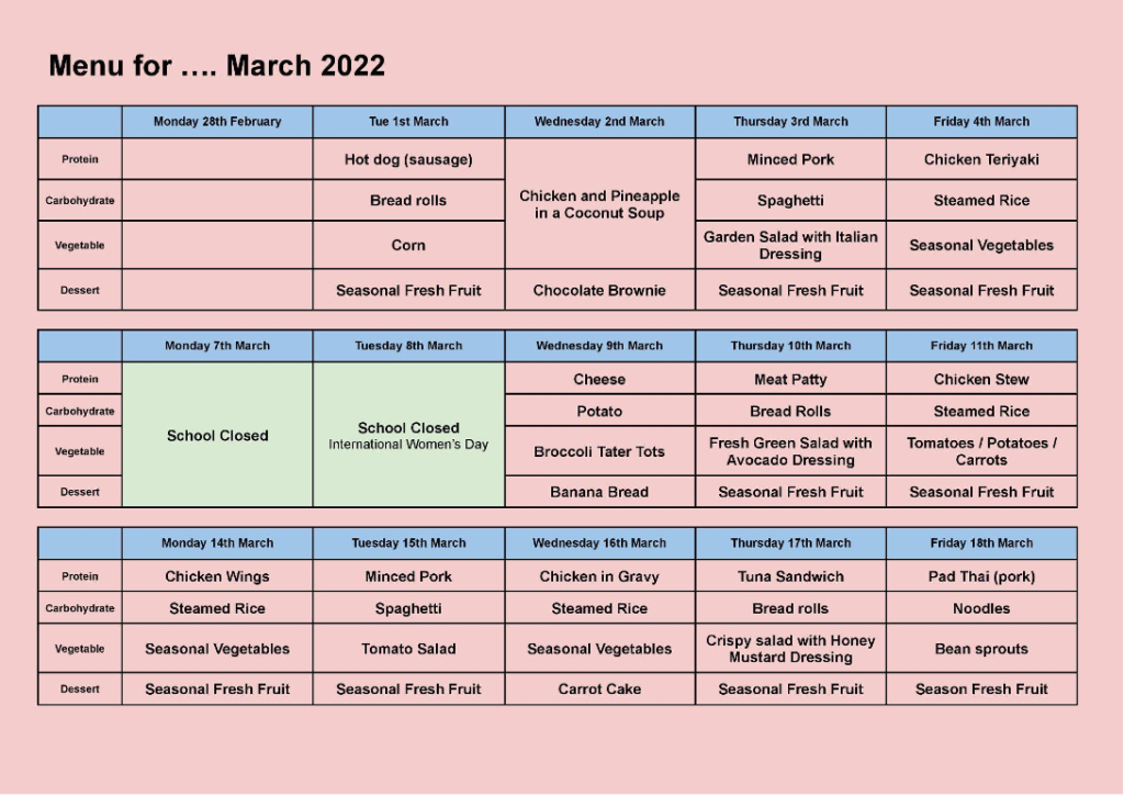 Please remember that school is CLOSED on Monday and Tuesday – Tuesday to celebrate International Women’s Day