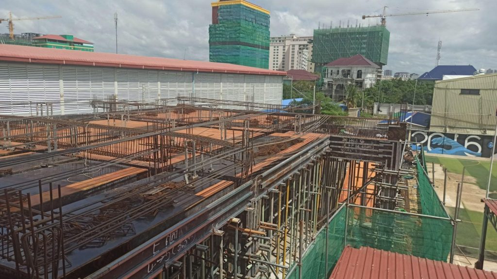 Getting the steel bars ready to into the mould, before the concrete is poured